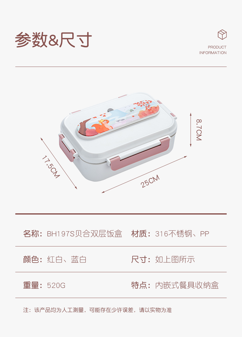 BH198S 貝合多彩雙層飯盒